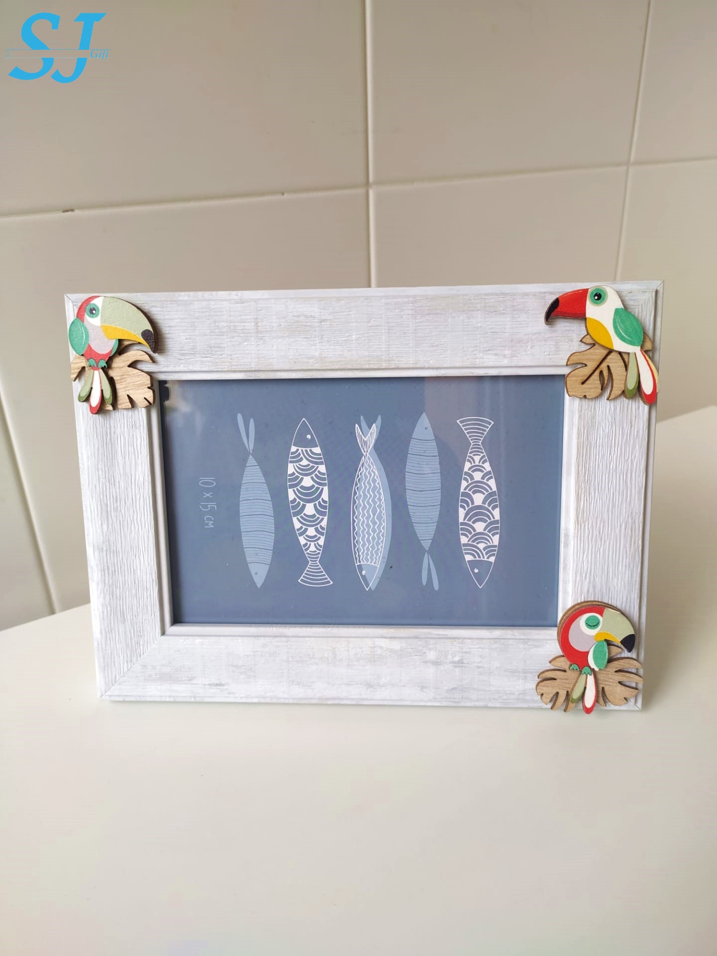 Moldura madeira riscada com peças em balsa, pata fotografia horizontal 10x15 cm